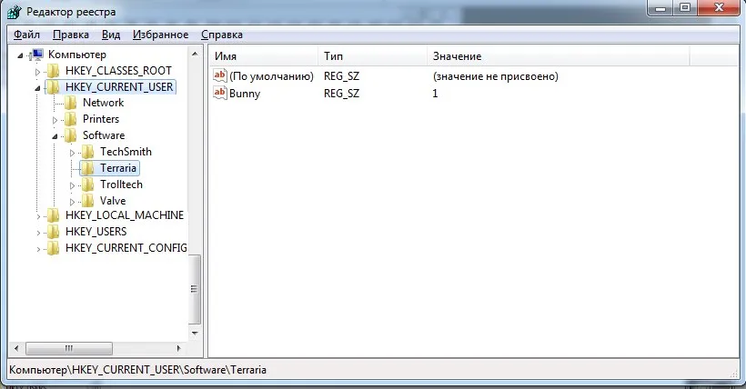 - Открываем HKEY_CURRENT_USER\Software\Terraria